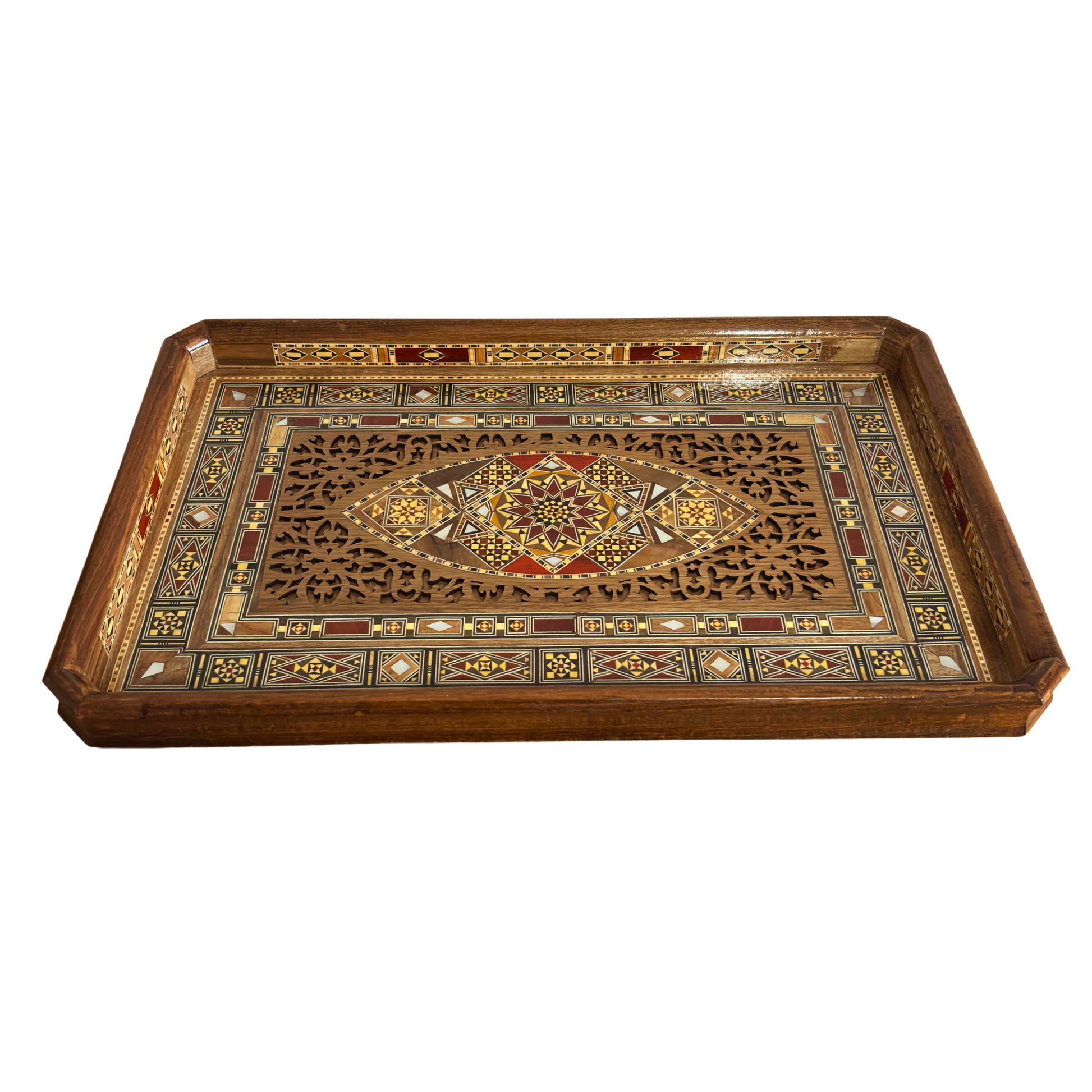 Plateau Damasquiné en Bois – Incrustation de Nacre & Tons Naturels du Bois