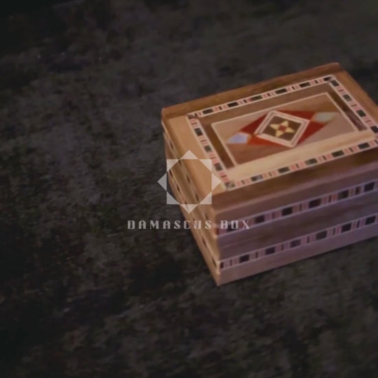 Questa scatola porta anello rappresenta la tradizione artigianale di Damasco, realizzata a mano con grande precisione e materiali naturali.