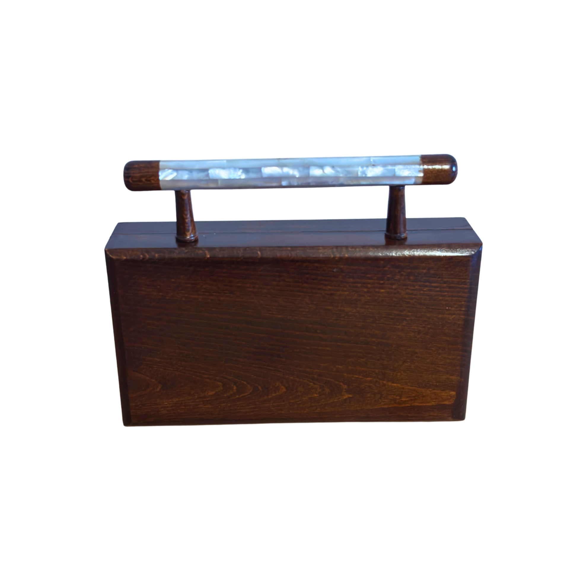 Damascener clutch, parelmoer, bloemenpatroon, notenhout, brokaat, handgemaakt, Damascus Box