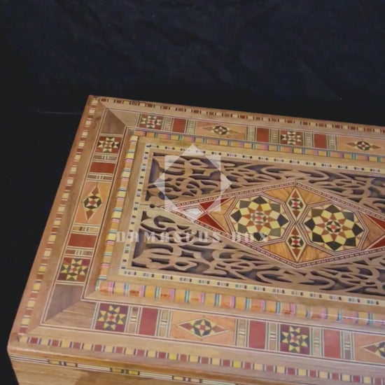 duże prostokątne pudełko mozaikowe, ręcznie robione pudełko z drewna buka, damascenskie pudełko na biżuterię, ręcznie robiona skrzynia na pamiątki, drewniane pudełko do przechowywania, rzemiosło z Damaszku, rękodzielniczy prezent, prezent ślubny, prezent na rocznicę, unikalny prezent urodzinowy, prezent z drewna premium, pudełko z Damaszku, syryjskie pudełko, prezent dla niej, prezent dla niego